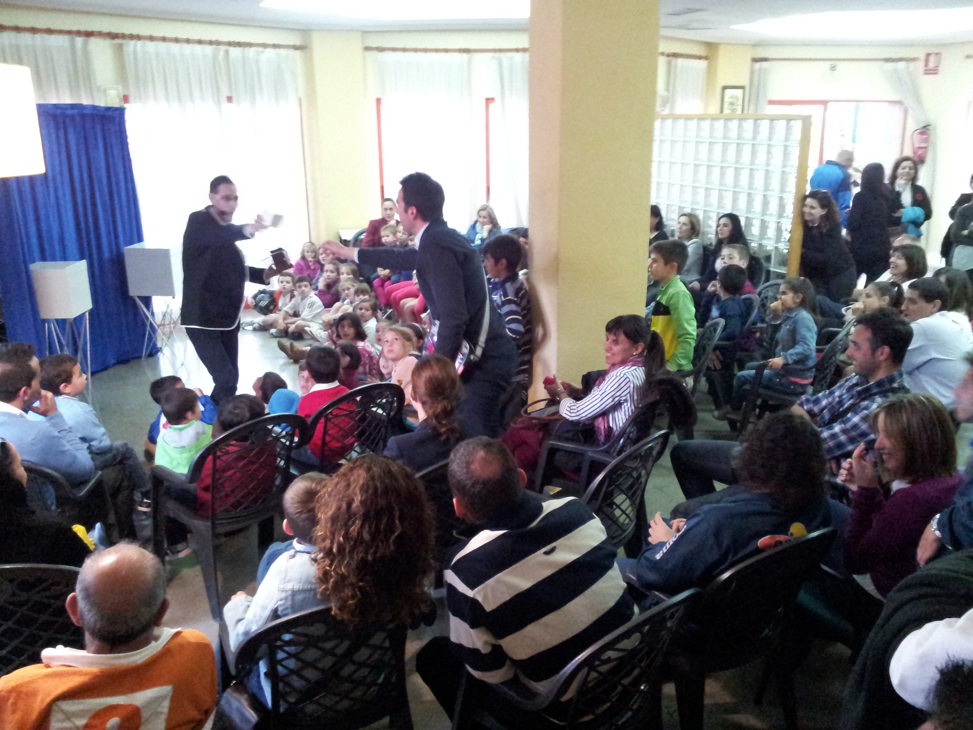 La tarde en el Club Social Orcelis, donde tuvo lugar la presentación oficial de la página Web de Diverty School fue fantástica, ya que dicha presentación fue todo un éxito así como el espectáculo de magia familiar que les presenté que fue acogido con grandes aplausos tanto por los más pequeños como por los mayores que formaron parte activa de la función. Así que sólo me queda decirles a mis ayudantes Maite, Javi, Ángel, Juan, Ángela, Claudio, Blanca, Diego y Merche que muchas gracias por su participación, sus sonrisas y sus aplausos.