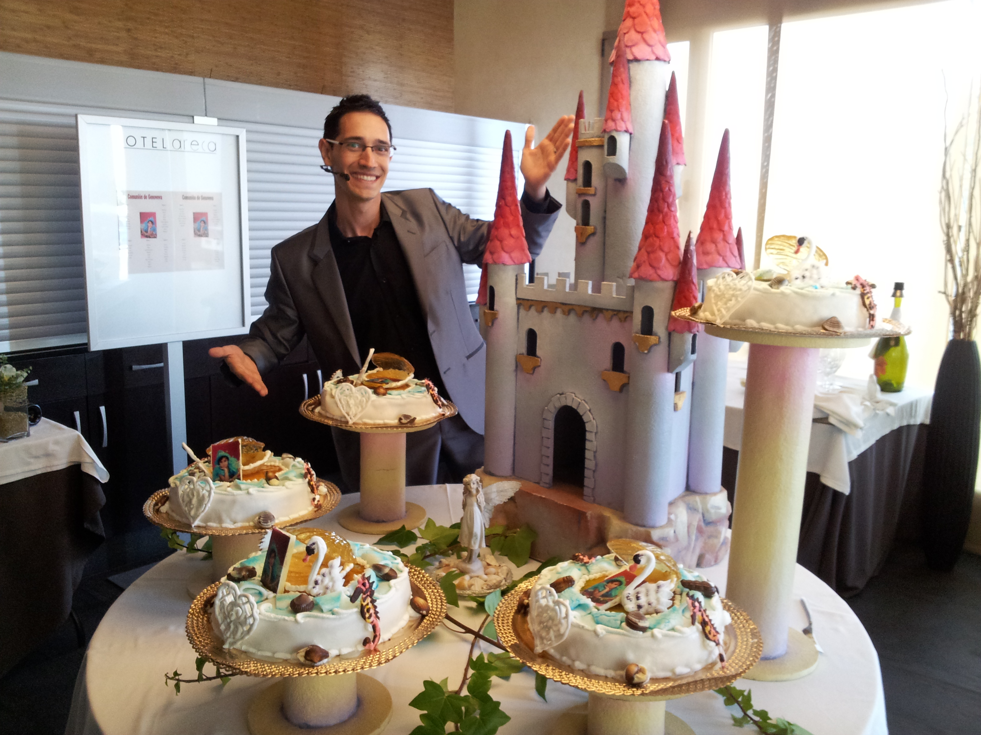 Mirad que castillo, con torres y tartas por todas partes, me encontré en la comunión de Genoveva en el Hotel Areca de Torrellano el pasado sábado. Era espectacular, espectacular 😉