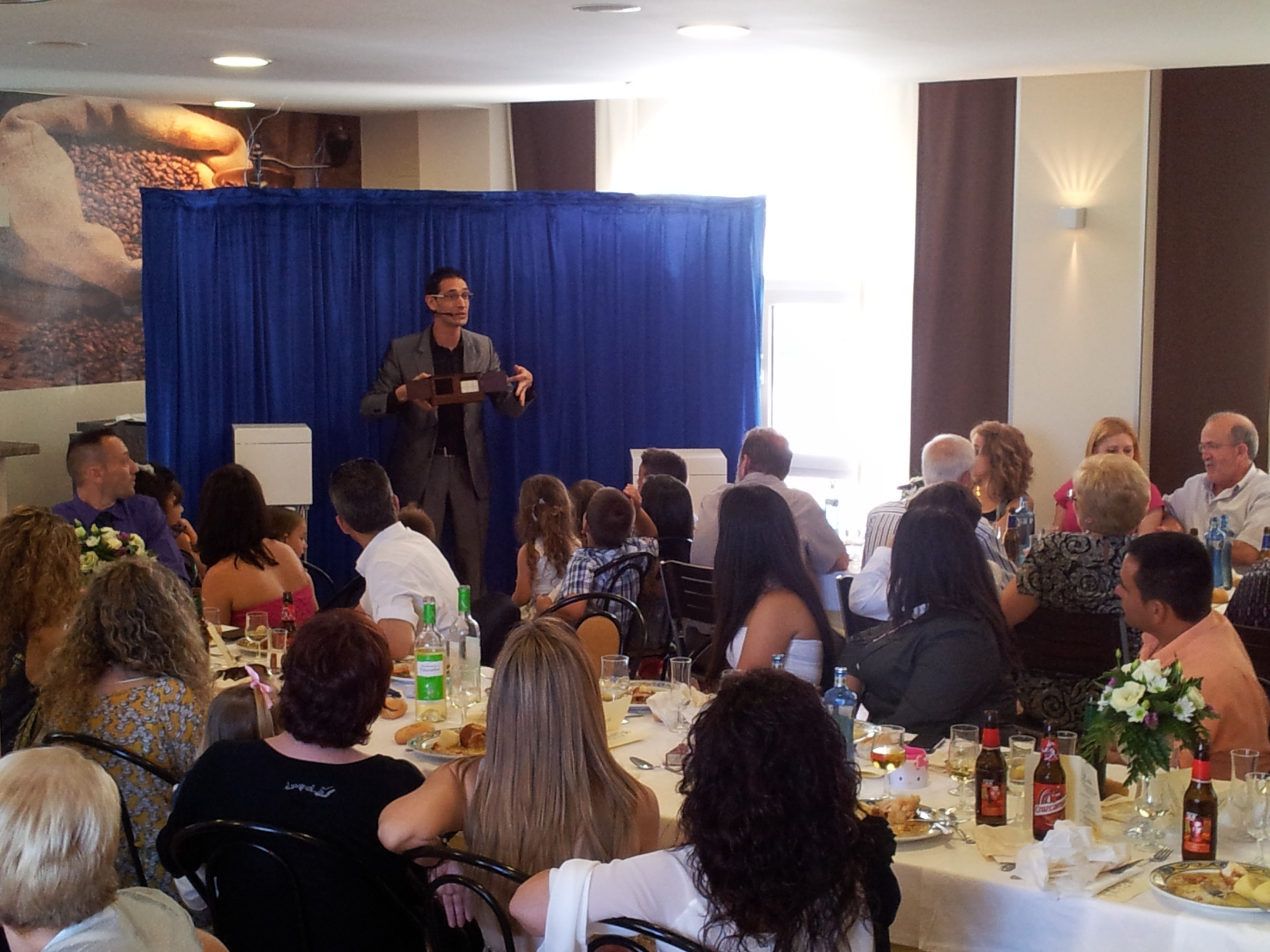 En el Hotel Guardamar pasamos una velada increíble. Pasó de todo, anécdotas para recordar siempre: caras de asombro como jamás había visto antes entre el público. Además, he de destacar la fantástica… atención de todo el personal del hotel desde nuestra llegada, en especial de Rita.