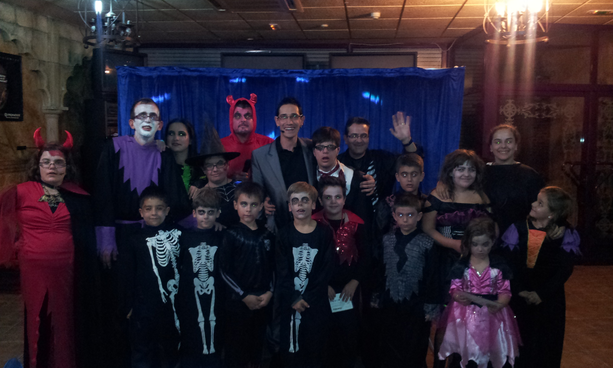 Después de la cena pudimos disfrutar de una noche mágicamente terrorífica con todos los asistentes, desde vampiros y condes hasta enfermeras y doncellas zombi jeje. Como siempre nos reimos muchísimo con los momentos creados con mis ayudantes, especialmente con la cara de sorpresa de Edel cuando vio desaparecer el bastón ante sus ojos o Alicia e Iván cuando vieron el pañuelo cambiar de color mágicamente.