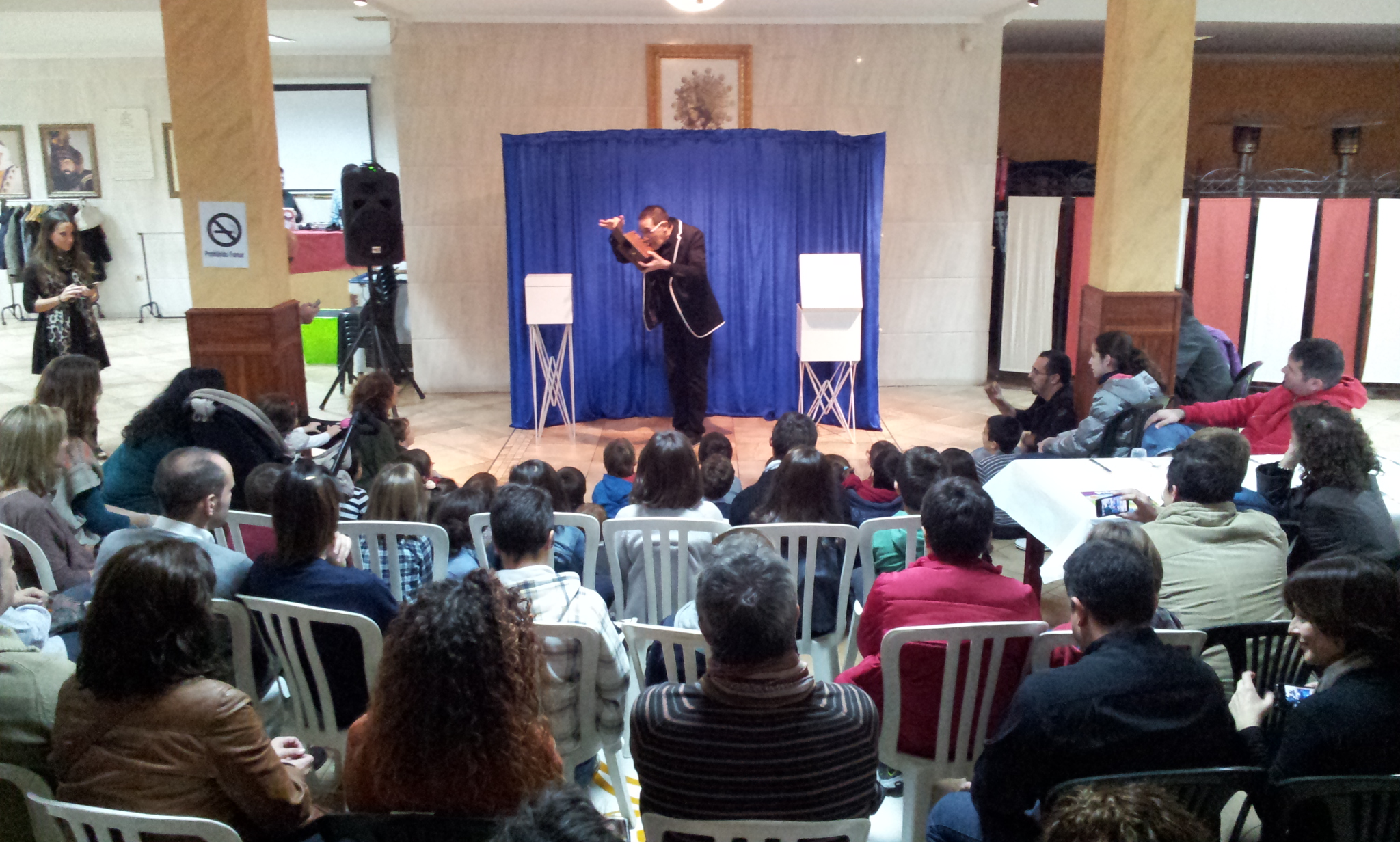 Es muy divertido hacer un espectáculo para personas que vienen desde distintos puntos de la geografía española, porque surgen anécdotas que nos hacer disfrutar aún más del espectáculo. Tanto es así que tuve ayudantes como Daniel de Granada, Benito de Valencia, Juan de Sevilla, Javier, Fran y Patricia de Madrid, Sara y Lucía de Ibi, Vences, Cristina y Javier, Guillem de Barcelona. Pero indiscutiblemente el momento más divertido lo protagonizó Aitana tras preguntarle de donde era y me dijo “¡Yo de España!” y es que claro, decir eso justo después de haberle preguntado a Guillem que de donde era pues… suscitó un momento “mágico” para los mayores.